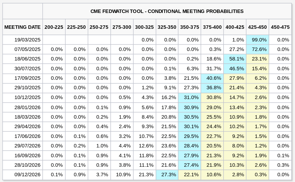 Probabilidades de la tasa objetivo de la Fed. Fuente: CME Group