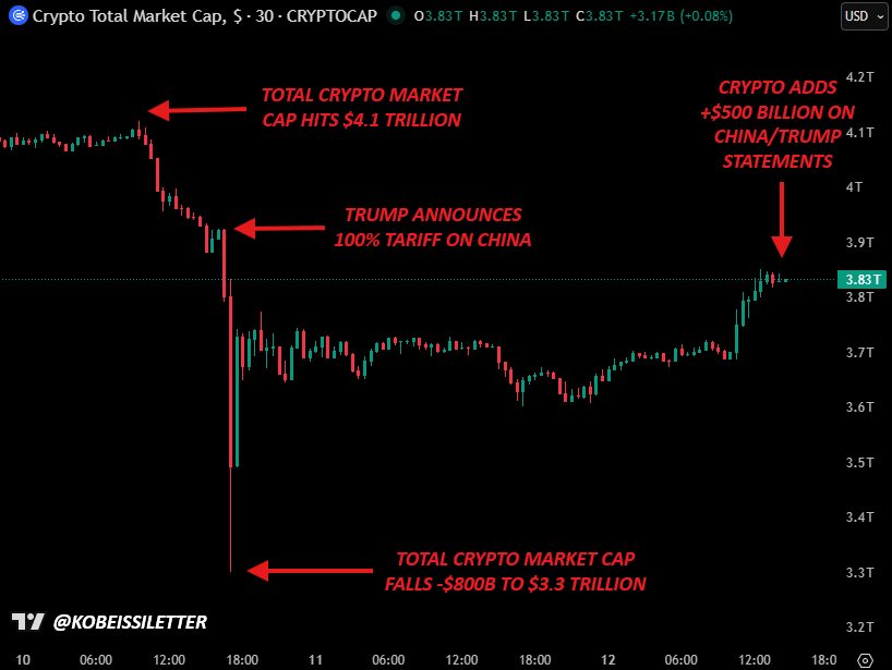 Gráfico de 30 minutos de la capitalización total del mercado de criptomonedas. Fuente: Adam Kobeissi/X