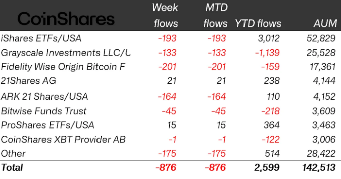 El mercado de ETP de criptomonedas está en una fase de transición. La reciente salida de capital de $876 millones refleja un ajuste en las expectativas y estrategias de los inversores.